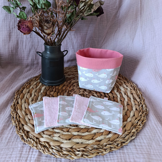 Panière + 5 Cotons Lavables Baleines