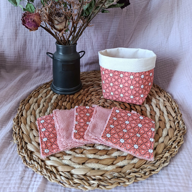 Panière + 5 Cotons Lavables Étoiles Corail